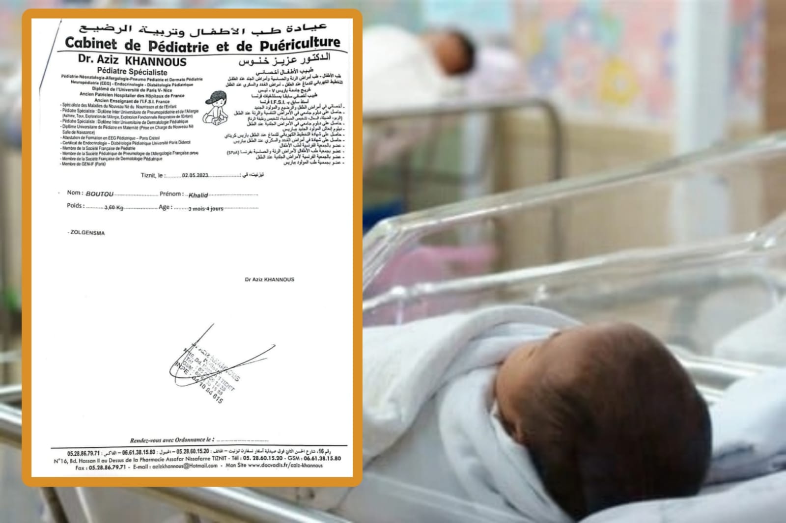 أنهك مرض الضّمور العضلي الشوكي جسد الطفل خالد (03 أشهر) المتحدر من جماعة الأخصاص (عمالة إقليم سيدي إفني) ، بينما تعجز أسرته عن علاجه الذي يُعَدّ الأغلى في العالم.