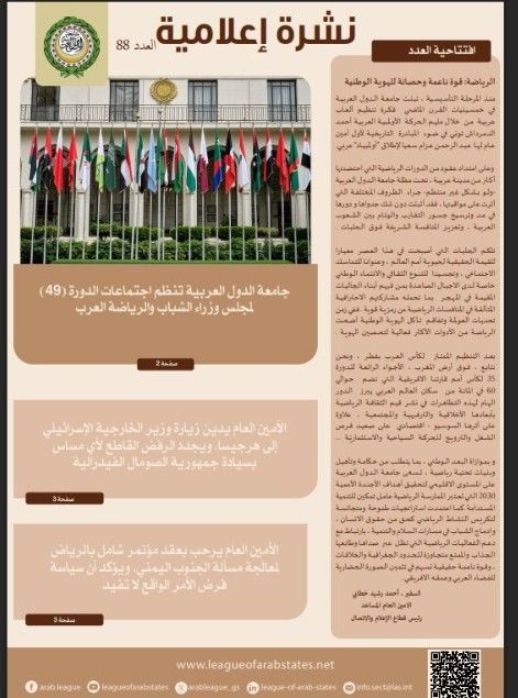 و بموازاة البعد الوطني، بما يتطلب من حكامة وتأهيل وبنيات تحتية رياضية ،ذكر خطابي رئيس قطاع الإعلام والاتصال أن جامعة الدول العربية تسعى على المستوى الإقليمي لتحقيق أهداف الأجندة الأممية 2030 التي تعتبر الممارسة الرياضية عامل تمكين للتنمية المستدامة .كما اعتمدت استراتيجية طموحة ومتجانسة لتكريس النشاط الرياضي كحق من حقوق الإنسان ، وإدماج الشباب في مسارات السلام والتنمية ، بارتباط مع دعم الفعاليات الرياضية التي تظل عبر صداها وطابعها الجذاب متجاوزة للحدود الجغرافية والخلافات ، وقوة ناعمة حقيقية تسهم في تثمين الصورة الحضارية للفضاء العربي وعمقه الافريقي.