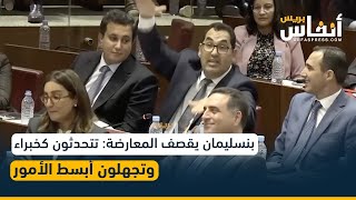 بنسليمان يقصف المعارضة: تتقمصون شخصية الخبير في البر والبحر وتنطقون مثل الجاهل في مجال الخبرة