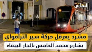مشرد يعرقل حركة سير الترامواي بشارع محمد الخامس بالدار البيضاء