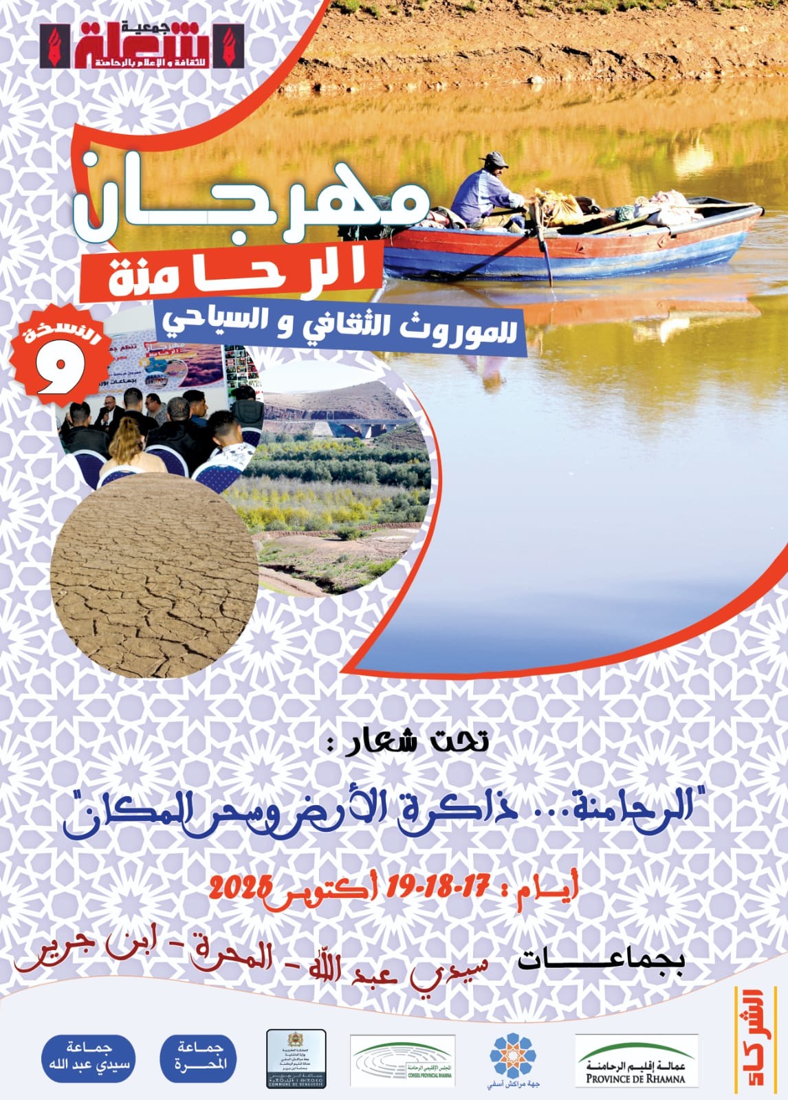 تعتزم جمعية شعلة للثقافة والإعلام بالرحامنة تنظيم الدورة التاسعة من مهرجان الرحامنة للموروث الثقافي والسياحي، وذلك أيام 17 و18 و19 أكتوبر 2025 تحت شعار: "الرحامنة… ذاكرة الأرض وسحر المكان"،