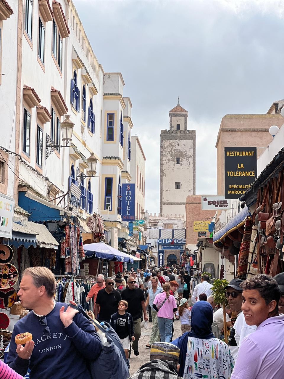 مختلف الوجبات سواء الخفيفة أو الدّسمة التي اخترنا إطعام معدتنا بها، كانت بلمسة ونكهة تمغربيت، حيث أطباق الأكل بنفس مغربي وتوابل تفوح بعطرها الساحر، إذ لا يمكن أن تتناول الطعام دون أن يجلس بالقرب منك سائح وسائحة أجنبية بمنتهى التقدير، وكأن "ملح الطعام" المشترك المغربي يفرض طقوسه في لحظة مقدسة تزول فيها الفوارق الطبقية ويذوب فيها نوع الجنس والعرق واللون والدين. إنها مدينة تمثل نموذج مفهوم التعدد والاختلاف والقيم الإنسانية المشتركة كونيا بتقاليدها وعادات الوافدين عليها من كل بقاع العالم.