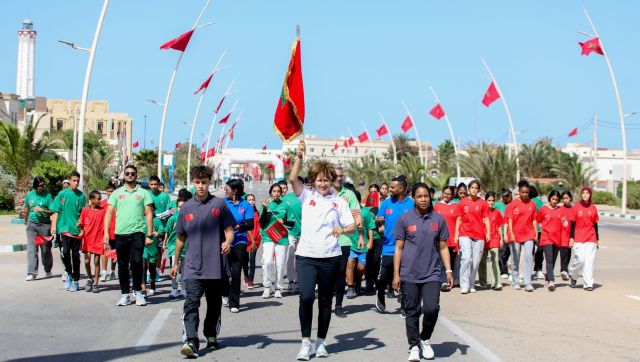 المجتمع الرياضي.. حضور دائم في مسار الدفاع عن قضية الصحراء  نزهة بدوان تحمل العلم الوطتي في سباق التناوب الرمزي المسيرة الخضراء