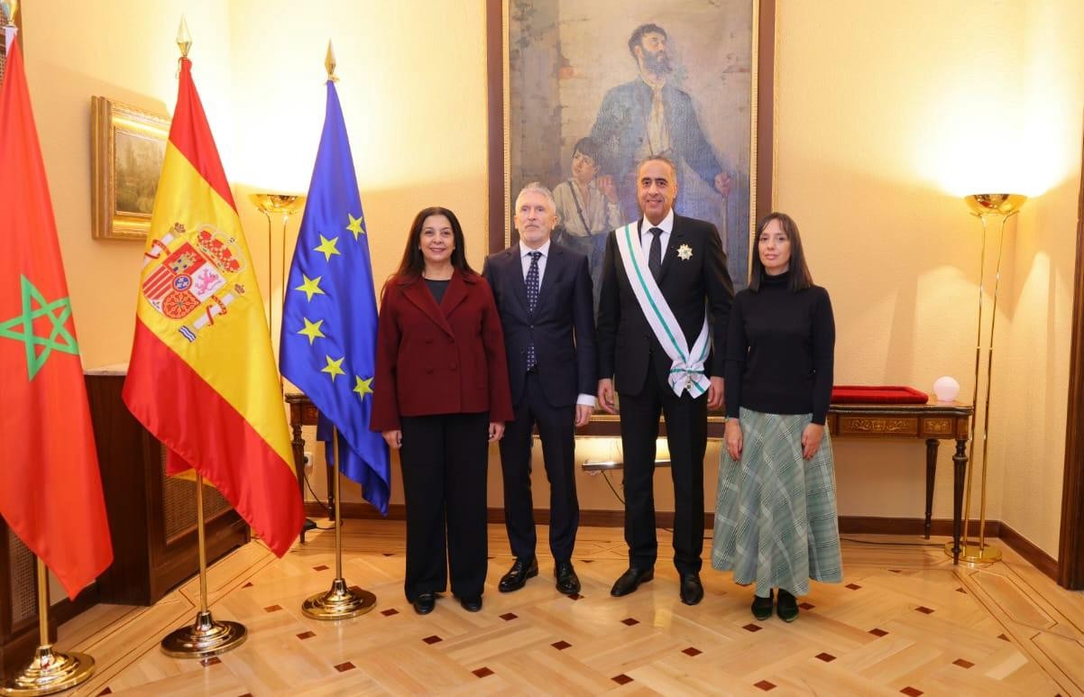 ووزير الداخلية الإسباني فرناندو غراندي مارلاسكا، والمدير العام للأمن الوطني ولمراقبة التراب الوطني عبد اللطيف حموشي أشرف وزير الداخلية الإسباني فرناندو غراندي مارلاسكا، يوم الثلاثاء 11نونبر 2025، بالعاصمة الإسبانية مدريد، على الحفل الرسمي لتوشيح المدير العام للأمن الوطني ولمراقبة التراب الوطني عبد اللطيف حموشي، بوسام الصليب الأكبر للاستحقاق للحرس المدني، الذي يعد أرفع وأسمى وسام تمنحه هذه المؤسسة الأمنية للشخصيات الأجنبية.