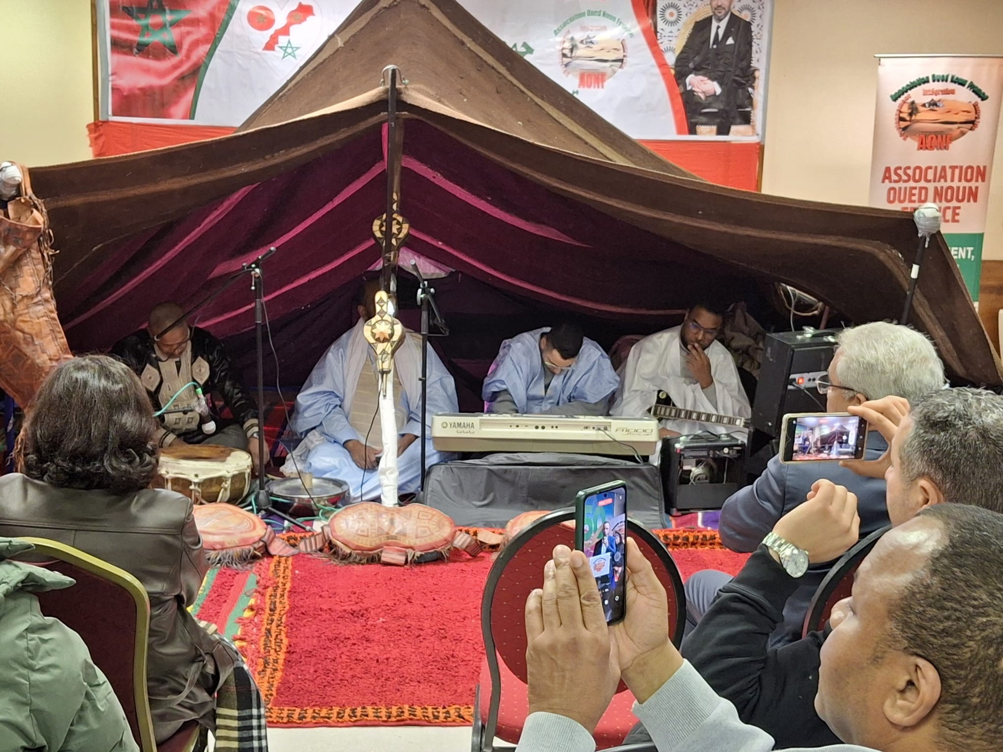في نواحي باريس بأرجونتوي، يوم الأحد 23 نونبر 2025، إرتفعت خيمة لا تشبه أي خيمة أخرى خيمة نسجت من رمل الصحراء ونفَس تاريخ المسيرة الخضراء أقامتها جمعية نون بقيادة رئيسها رشيد بداهي في مشهد بدا كأنه إستعادة لدفء الجنوب المغربي بين الأزقة الباردة للعاصمة الفرنسية. كانت الخيمة قائمة كجدار من الانتماء يحمل ذاكرة الوافدين من وادي نون والمناطق الصحراوية أولئك الذين غادروا الأرض ولم تغادرهم جذورها فحضروا ليحتفلوا بعيد المسيرة وبإحصائيات وإنجازات جمعيتهم التي تحولت إلى بيت كبير للجالية وجسرا يعيد وصل الأجيال بروابط الوطن وقيمه.