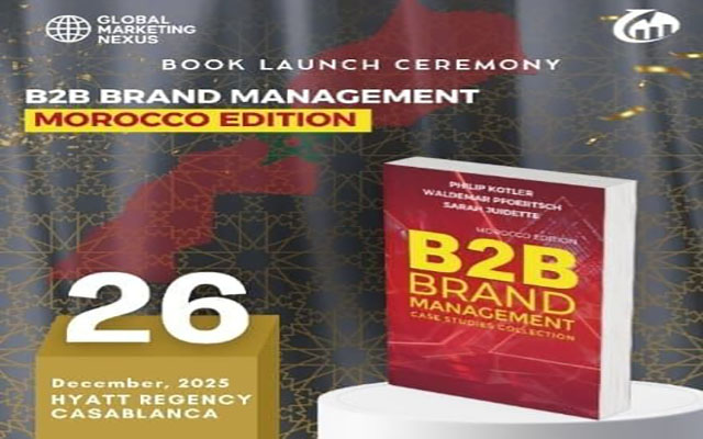 تحتضن الدار البيضاء يوم 26 دجنبر 2025، إطلاق النسخة المغربية من مؤلف «إدارة العلامات التجارية بين الشركات – مجموعة دراسات حالة»، وهو مشروع استراتيجي نابع من تعاون بين البروفيسور فيليب كوتلر، أحد أبرز المراجع العالمية في علم التسويق، والدكتور فالدمار بفورش، الأستاذ الفخري والخبير المعترف به دوليًا في مجال العلامات التجارية بين الشركات، والدكتورة سارة جويـدات، الخبيرة المغربية في التسويق أستاذة ونائبة مدير المدرسة الوطنية للتجارة والتسيير - جامعة الحسن الثاني الدار البيضاء . ويسلط هذا الإصدار الضوء على 10 شركات ومقاولات ناشئة مغربية تنتمي إلى قطاعات حيوية تشمل القطاع البنكي، والمواد الاستهلاكية سريعة التداول، والصناعة، واللوجستيك، والنقل، والعلامة الترابية، ثم اختيارها وفق معايير عالية من التميز والابتكار، بما يعكس إسهامها في التنمية الاقتصادية على المستويين الوطني والجهوي.