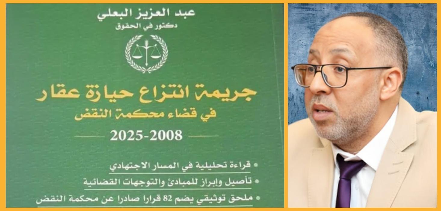 لا شك أن الساحة القانونية بالمغرب تشهد دينامية علمية متنامية، تعكسها الإصدارات المتخصصة التي تسعى إلى تفكيك الإشكالات العملية وإعادة بنائها في ضوء التحولات القضائية المتسارعة… وفي هذا السياق، أعلن الدكتور عبد العزيز البعلي عن صدور مؤلفه الجديد الموسوم بـ "جريمة انتزاع عقار من حيازة الغير في قضاء محكمة النقض (2008–2025)"، في خطوة علمية تندرج ضمن الجهود الرامية إلى تأصيل الفهم القانوني لهذا النوع من الجرائم ذات الامتداد المركب.