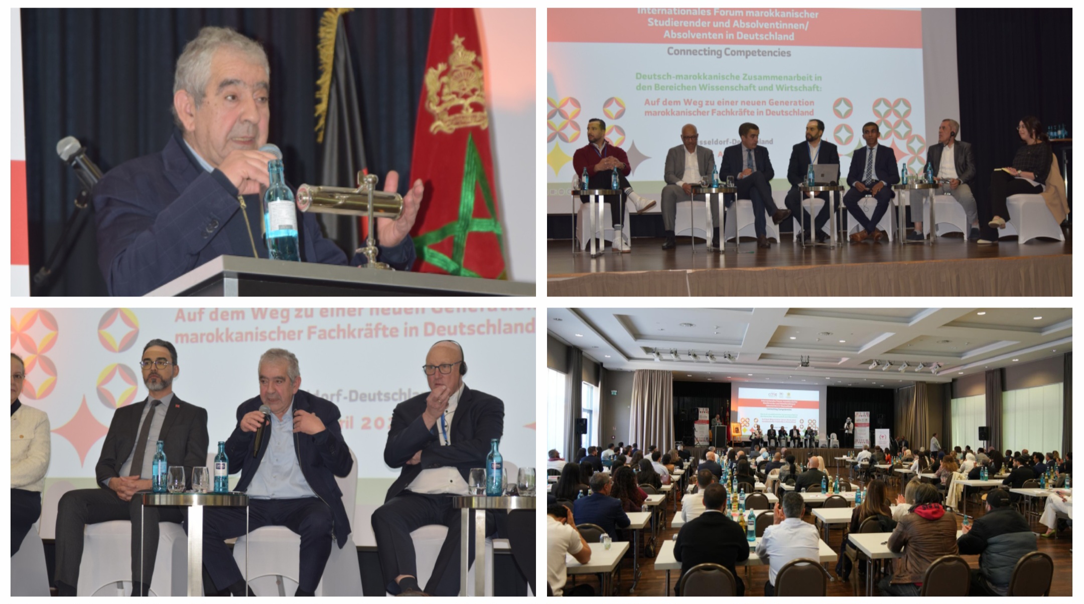وقد زاد من أهمية هذا الموعد الحضور الوازن لشخصيات مؤسساتية وأكاديمية ومهنية، عكست في مجملها المكانة التي يحظى بها موضوع مغاربة العالم ضمن التفكير العمومي المغربي. فقد عرفت الجلسة الافتتاحية مشاركة السيد إدريس اليزمي، رئيس مجلس الجالية المغربية بالخارج، والسيد إسماعيل لمغاري، القائم بالأعمال بسفارة المملكة المغربية بألمانيا، ممثلا لوزارة الشؤون الخارجية والتعاون الإفريقي والمغاربة المقيمين بالخارج، والسيدة بثينة بوعبيد، القنصل العام للمملكة المغربية بدوسلدورف، إلى جانب السيد Martin Kalhöfer، المسؤول السابق عن منطقة إفريقيا والشرق الأوسط بمؤسسة Germany Trade & Invest، والسيد سعيد مهني، رئيس جمعية الطلبة والخريجين المغاربة بألمانيا.