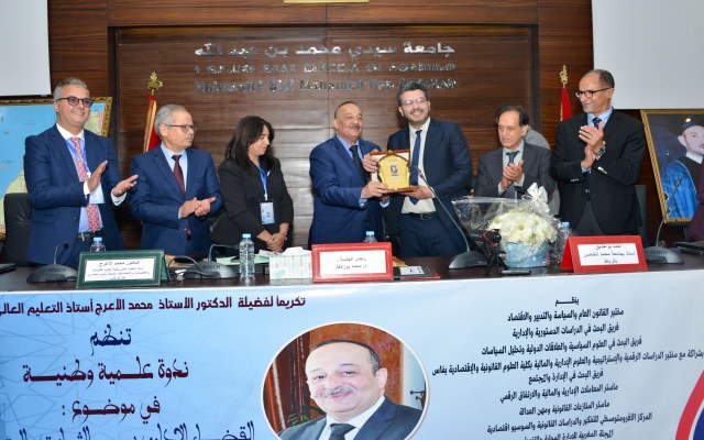 وعرفت هذه التظاهرة لحظة احتفالية مؤثرة، حيث قام عميد كلية الحقوق بفاس الاستاذ محمد بوزلافة بتقديم درع التكريم للدكتور محمد الأعرج، تقديراً لمساره العلمي والإداري الحافل. كما تم تكريم عدد من الأساتذة والقضاة الذين ساهموا في إنجاح هذا اللقاء العلمي، وفي مقدمتهم الأستاذ عز العرب الحمومي، الرئيس الأول لمحكمة الاستئناف الإدارية بالرباط، عرفاناً بدورهم في خدمة العدالة الإدارية وتعزيز إشعاعها.