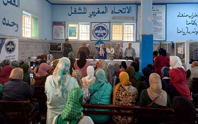 احتضن مقر الاتحاد المغربي للشغل بالناظور  لقاءا تواصليا، عقدته اللجنة المكلفة بالتواصل من داخل المكتب النقابي للعمال والعاملات حاملي رخص الشغل بمليلية المحتلة، وأطرته ممثلة المكتب النقابي عتيقة ختا، والتي سردت سيرورة تطور الملف ومختلف ما أنجز فيه لغاية الآن؛ كما نبهت المتحدثة باسم المكتب أن هناك جهات غير مسؤولة، من داخل الإقليم وخارجه، تعمل على تشتيت وحدة صف القطاع من أجل تحقيق تموقعات انتهازية، دون أي  الاتحاد في هذا الملف، واخبرت ذات المتحدثة ان مسألة عودة العاملات والعمال حاملي رخص الشغل هي قضية وقت فقط، مفندة كل المعلومات التي تروج حول استثنائهم من دخول مليلية، بعد فتح المعابر.