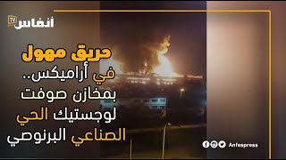 حريق مهول في أراميكس.. بمخازن صوفت لوجستيك الحي الصناعي البرنوصي
