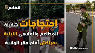 احتجاجات شغيلة المطاعم والملاهي الليلية بمراكش أمام مقر الولاية