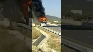 احتراق حافلة نادي وفاق سطيف الجزائري لكرة القدم