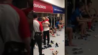 رئيسة كرواتيا تفاجئ زملاء مودريتش في مستودعات الملابس