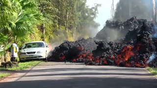 فيديو مرعب .. حمم بركانية تلتهم كل شيء في طريقها وتقترب من محطة كهربائية بهاواي
