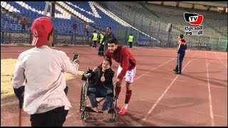 رغم إصابته.. أزارو يلبي رغبة طفل أهلاوي على كرسي متحرك