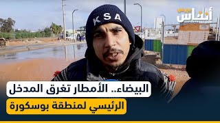 البيضاء.. الأمطار تغرق المدخل الرئيسي لمنطقة بوسكورة