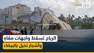 الرياح تتسبب في سقوط واجهات المقاهي وأشجار النخيل بالدار البيضاء