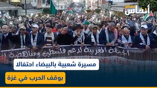 مسيرة شعبية بالبيضاء احتفالا بوقف الحرب في غزة