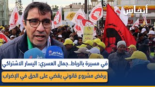 في مسيرة بالرباط..جمال العسري: اليسار الاشتراكي يرفض مشروع قانوني يقضي على الحق في الإضراب