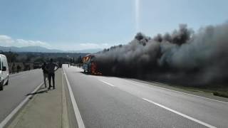 احتراق حافلة لنقل الركاب في الطريق الرابط بين تطوان طنجة اليوم السبت 29 أكتوبر2016
