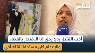 أخت القتيل بدر: يحق لنا الافتخار بالقضاء والإعدام كان مستحقا لقتلة أخي