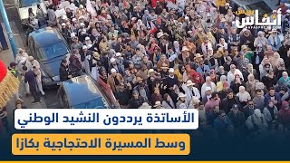 الأساتذة يرددون النشيد الوطني وسط المسيرة الاحتجاجية بكازا