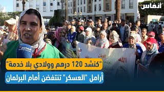 "كنشد 120 درهم وولادي بلا خدمة"....أرامل "العسكر" تنتفضن أمام البرلمان