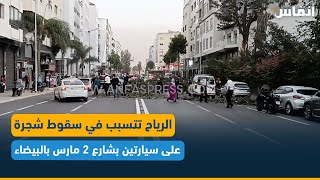 الرياح تتسبب في سقوط شجرة على سيارتين بشارع 2 مارس بالبيضاء