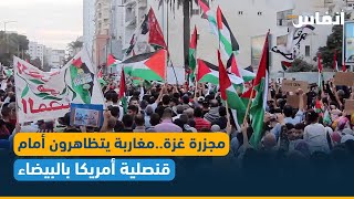 مجزرة غزة.. مغاربة يتظاهرون أمام قنصلية أمريكا بالبيضاء تضامنا مع فلسطين