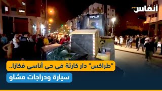 "طراكس" دار كارثة في حي اناسي بالدار البيضاء.. سيارة ودراجات مشاو