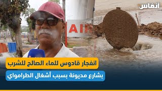 انفجار قادوس للماء الصالح للشرب بشارع مديونة بسبب أشغال الطرامواي