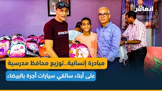 مبادرة إنسانية..توزيع محافظ مدرسية على أبناء سائقي سيارات أجرة بالبيضاء