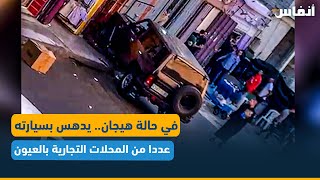 في حالة هيجان.. مخمور يدهس بسيارته عددا من المحلات التجارية بالعيون