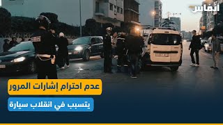 عدم احترام إشارات المرور يتسبب في انقلاب سيارة في شارع أنوال بالبيضاء
