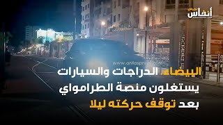 البيضاء.. الدراجات والسيارات يستغلون منصة الطرامواي بعد توقف حركته ليلا