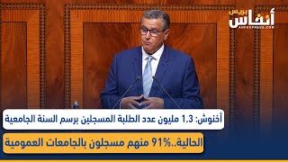 أخنوش: 1,3 مليون عدد الطلبة المسجلين برسم السنة الجامعية الحالية..91% منهم مسجلون بالجامعات العمومية