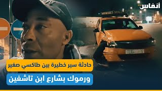 السباق على البلايص سبب حادثة سير خطيرة بين طاكسي صغير ورموك بشارع ابن تاشفين