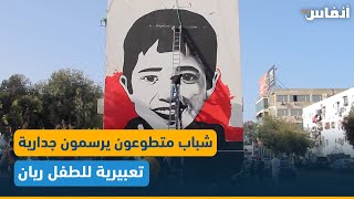 البيضاء: شباب متطوعون بالحي الحسني يرسمون جدارية تعبيرية للطفل ريان