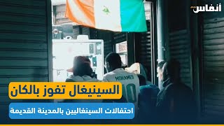 احتفالات السينغاليين بالفوز بالكان بالسوق النموذجي بالمدينة القديمة بالبيضاء