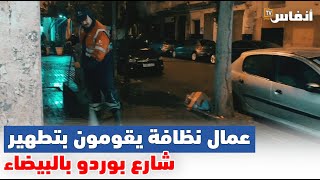 عمال نظافة يقومون بتطهير شارع بوردو بالبيضاء من البول والغائط