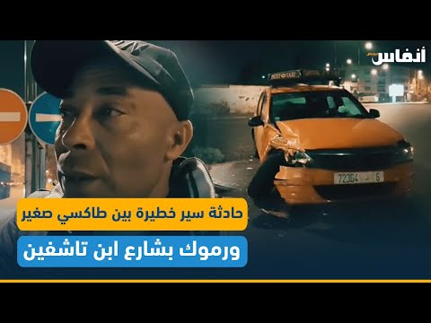 السباق على البلايص سبب حادثة سير خطيرة بين طاكسي صغير ورموك بشارع ابن تاشفين