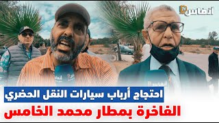 احتجاج أرباب السيارات الفاخرة للنقل الحضري بالمطار أمام عمالة النواصر بعد توقيفهم من العمل