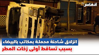 انزلاق شاحنة محملة بمكاتب بالبيضاء بسبب تساقط أولى زخات المطر