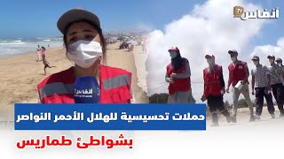 حملات تحسيسية للهلال الأحمر النواصر بشواطئ طماريس للحد من خطورة الوباء