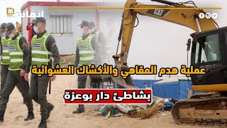 عملية هدم المقاهي والأكشاك العشوائية بشاطئ دار بوعزة