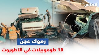 رموك عجن 10 سيارات من بينهم جوج عائلات بالطريق السيار