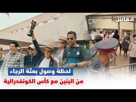 لحظة وصول بعثة الرجاء من البنين مع كأس الكونفدرالية