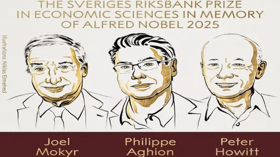 منحت جائزة نوبل الاقتصاد الاثنين 13 أكتوبر 2025،  للاميركي جويل موكير والفرنسي فيليب أغيون والكندي بيتر هويت عن دراساتهم المتعلقة بتأثير التكنولوجيا على النمو الاقتصادي المستدام.