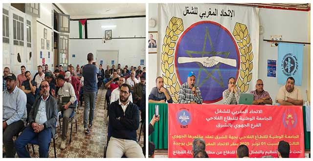 احتضن مقر الاتحاد المغربي للشغل بوجدة أشغال المؤتمر الجهوي للجامعة الوطنية للقطاع الفلاحي صبيحة يوم السبت 1 نونبر2025.